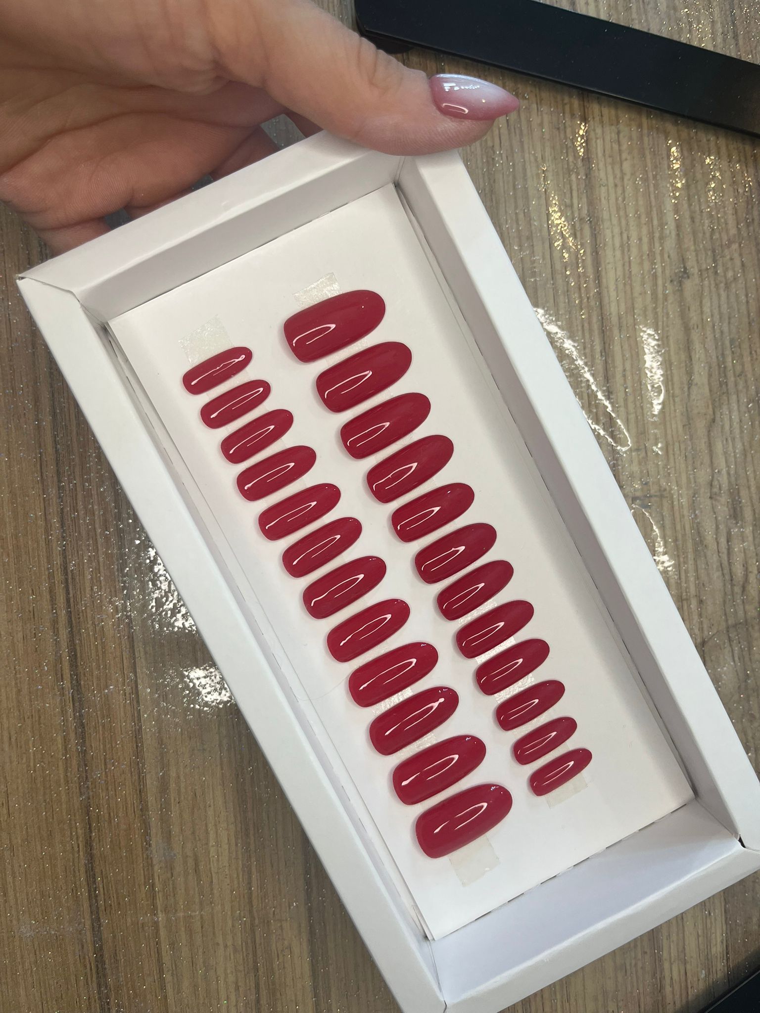 Rojas clásicas. Las imágenes de referencia son del largo y forma “redonda larga”. Pueden encargarse en cualqueira de los largos y formas disponibles. Incluye kit de aplicación.