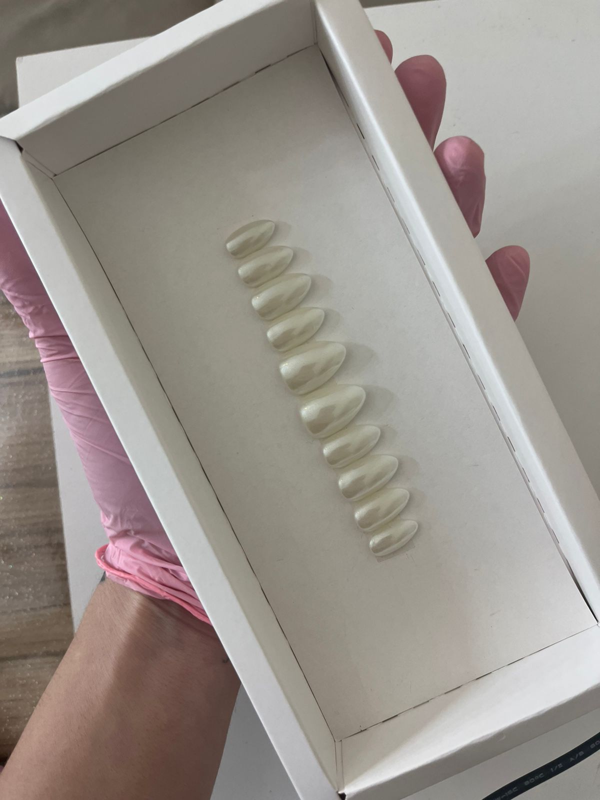 Las famosas Glazed Donut Nails de Hailey Bieber. Las imágenes de referencia son del largo y forma “almendra mediana”. Pueden encargarse en cualqueira de los largos y formas disponibles. Incluye kit de aplicación.