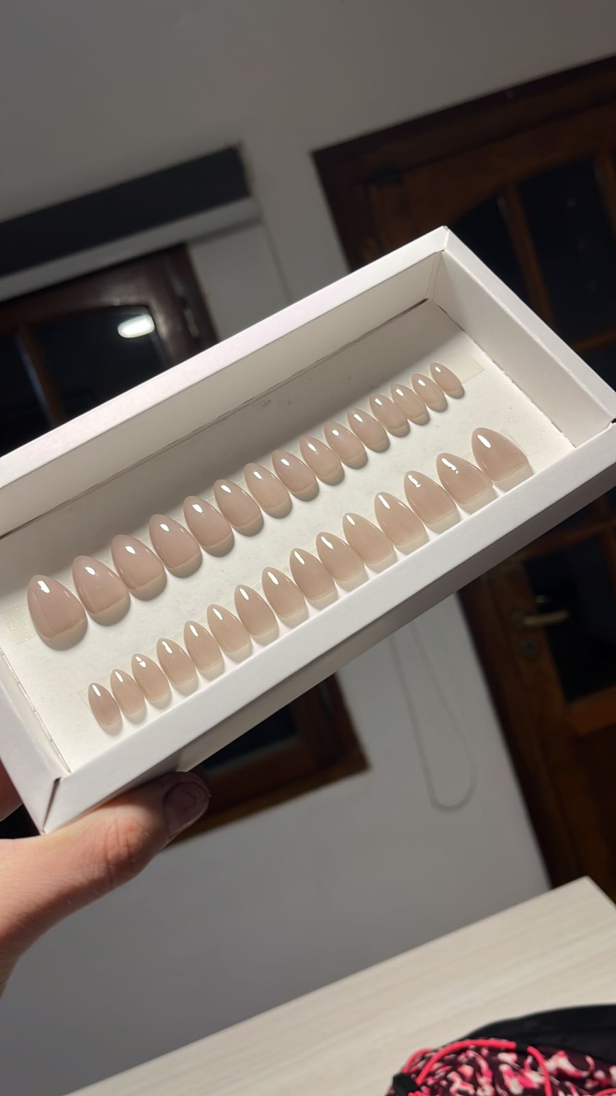 Tono nude-lila translúcido. Las imágenes de referencia son del largo y forma “almendra corta”. Pueden encargarse en cualqueira de los largos y formas disponibles. Incluye kit de aplicación.